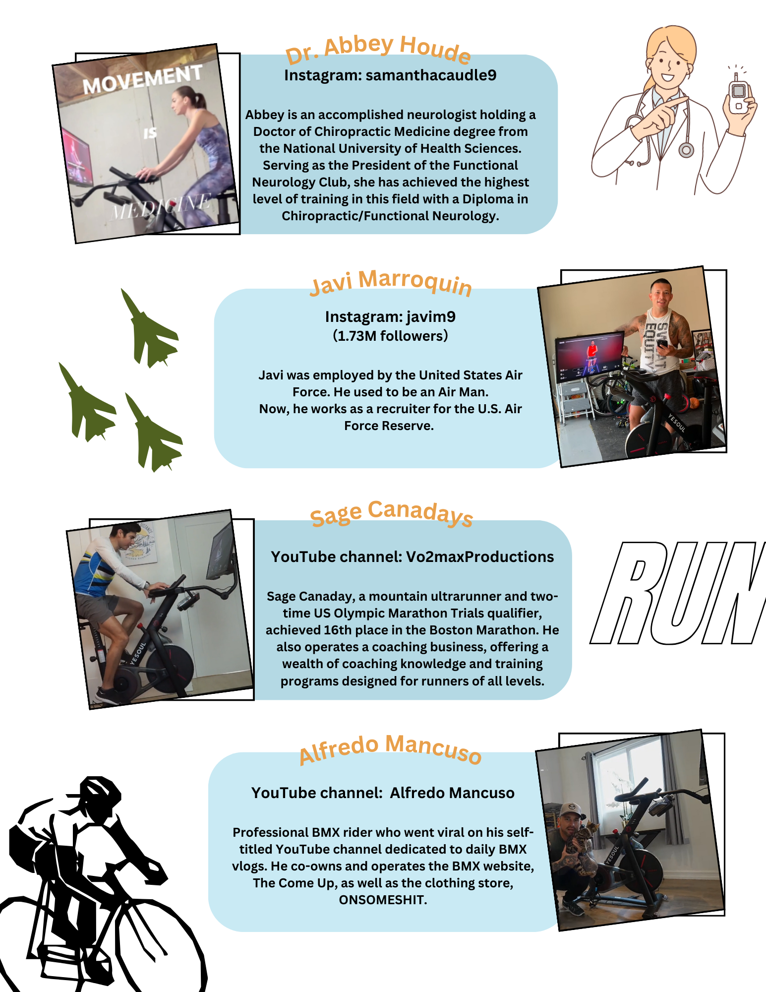 Hemos colaborado con más de 1.000 influencers diversos de distintos ámbitos. Nuestra misión es motivar a personas de todos los ámbitos de la vida a reconocer la importancia de la actividad física.
